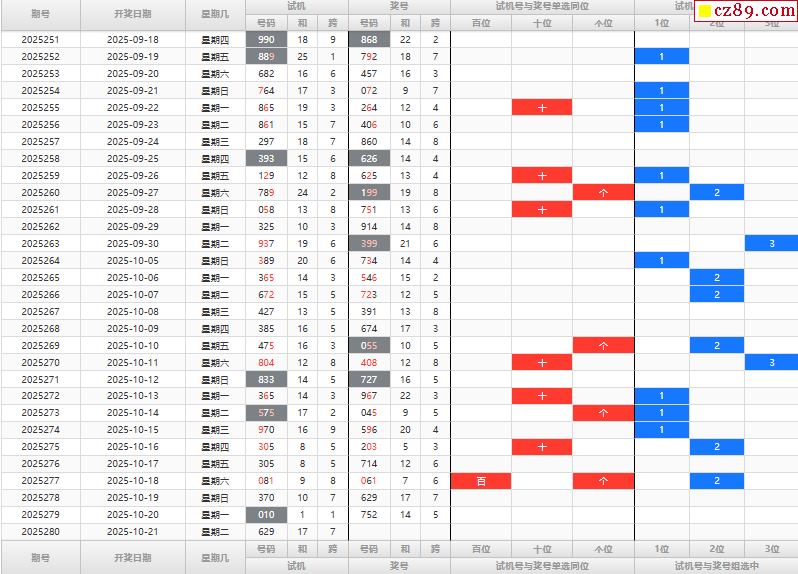 首页 > 福彩3D预测 > 25年280期福彩3D试机号走势图表分析